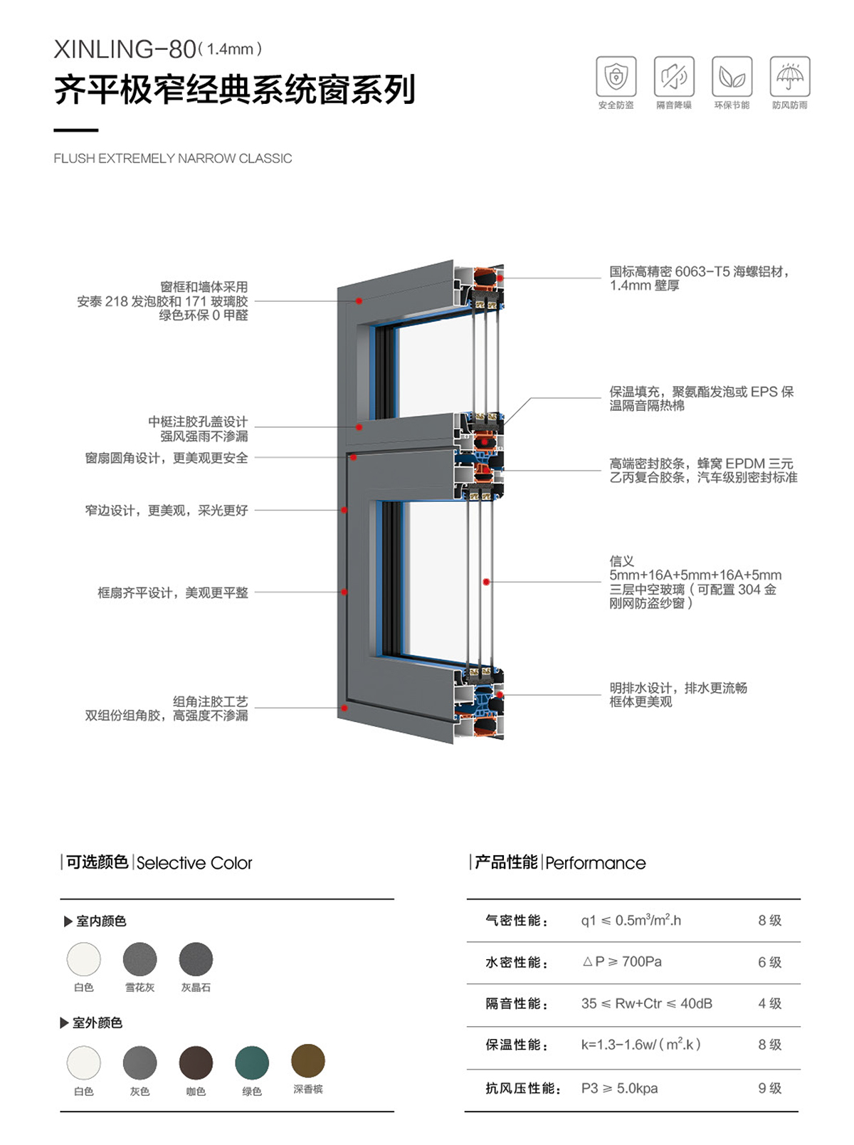 XINLING-80齐平极窄经典系统窗系列(1.4mm)